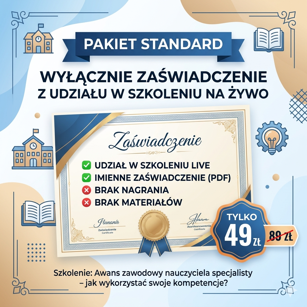 - zaświadczenie w formacie PDF do pobrania i samodzielnego wydruku z udziału w szkoleniu na zywo